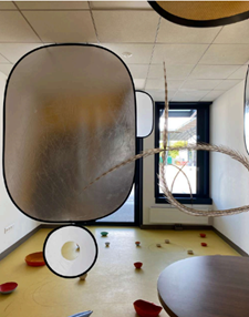 À l’instar des éventails qui, pour Mallarmé, deviennent poèmes à déployer, des matériaux simples et naturels sont utilisés pour proposer des œuvres éphémères, inscrites dans l’espace du collège et du musée.